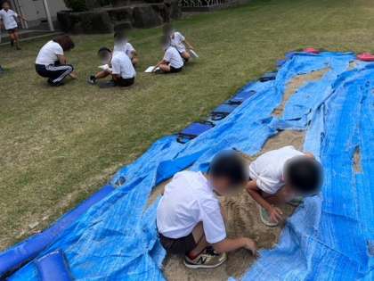 3年生は理科の学習です。今日は、日なたと日かげの地面の明るさや温かさを比べる実験をしました。実際に手で地面を触ると、同じ気温でも日かげの方がずいぶん地面が冷たく感じました。