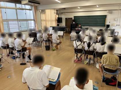 6年生は音楽の学習です。和音の響きの美しさを味わいながら合奏をします。「雨のうた」という課題曲を合奏パートに分かれて練習をしました。音が上手く重なると、とても優雅なメロディが音楽室に響きわたりました。