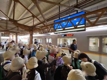 1.2年生は校外学習に出発です。西九条駅で乗り換えて天満にあるキッズプラザに向かいます。