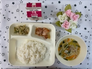 今日の「焼き豚とワンタンの皮のスープ」は、「ワンタンの皮」の個別対応献立です。