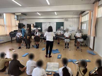 4年生は音楽の学習です。たくさん練習したこともあり、合奏の曲も仕上がってきました。今日はリズム隊とメロディ隊に分かれてお互いの演奏を聞き合いました。その後、全員で合わせると、それぞれの音が上手く重なり合っていて、とても素敵な演奏になりました。みんなで合奏する良さを改めて感じました。