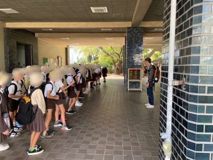 6年生は校外学習に出発しました。天候も良く、さわやかな陽気です。ピースおおさかの見学や大阪城公園で戦跡めぐりをする予定です。楽しみつつ、しっかり学んできたいと思います。それでは、いってきまーす。