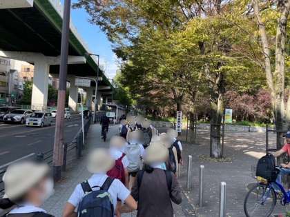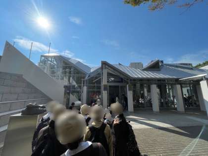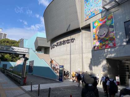 ピースおおさかに到着しました。他の学校もたくさん来ています。これから諸注意を聞いて見学です。