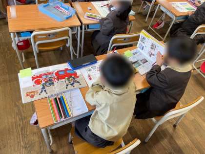 1年生は、国語の教材文「いろいろなふね」で学習したことをいかし、自分で選んだ乗り物について調べ、「やく目」「つくり」「できること」をまとめました。ひらがなの学習をしていたのが、ついこの前だったように感じるのですが、ここまでできるようになったんだなあ、と感心しました。