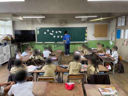 5年生は、算数でした。2つのグループに分かれて、既習内容の復習をしました。学習の定着を図るために、繰り返し取り組むことが大切ですね。