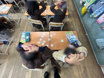 3年生は外国語活動の時間です。二人一組になってティアラ先生の言ったカードを取り合うゲームをしました。着実に子ども達に英語を聞きとる力がついていると感じました。その後は、What 〇〇 do you like? I like 〇〇.の会話を使って交流しました。