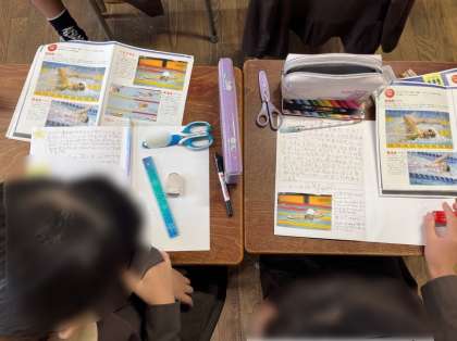 2年は国語で物語文「お手紙」学習をしています。今日は。お話全体を見渡して場面分けをしました。物語の絵を見て、お話の展開に気づき、場面分けをすることができました。