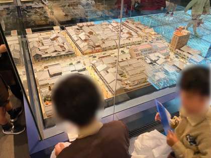 近代の大阪の様子を模型にして展示しています。とても精巧に作られていて、みんな熱心に見学していました。