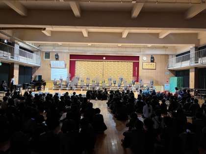 明日の学習発表会のリハーサルを兼ねて講堂で学習発表会相互鑑賞を行いました。