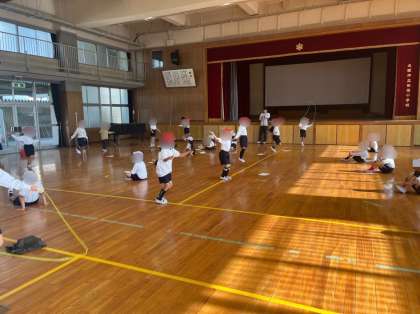 1年生は体育の学習でなわとびをしています。まずは前跳びと後ろ跳びの練習です。2人でペアになってお互いの跳んだ回数を数えました。跳ぶ練習も数える練習もできました。