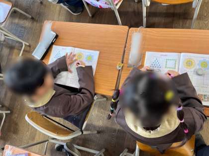 1年生は算数の学習です。2学期で習った内容のまとめに取り組んでいます。どちらが多いかな?どちらが長いかな?習ったことをしっかり自分の力にしていきましょう。