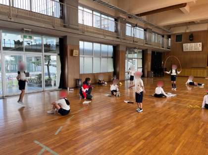 3年生は体育の学習でなわとびに取り組んでいます。2人でペアになってお互いの跳んだ回数を数えました。跳び方を変えて跳んだり、教え合ったりしながら練習しました。
