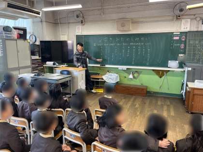 1年生は学級活動でお楽しみ会をしています。まず、先生からお楽しみ会でどんなことをするのか説明してくれます。黒板には楽しい遊びがたくさん書かれていて、子ども達は目を輝かせて説明を聞いていました。