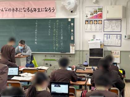 6年生は、国語でした。「いにしえの言葉に学ぶ」の学習で、歴史上の人物の名言を学習者用端末を使って調べました。自分の体験と結びつくような名言を探すので、多様な人物が選ばれていました。