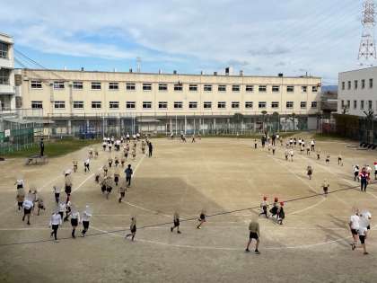 今日から「かけ足運動週間」がスタートしました。15分休みに運動場に出て、自分のペースでランニングをします。初日の今日は、運動場で1・3・5年生が元気いっぱいに走りました。1月23日(火)まで、火・木に奇数学年、月・水に偶数学年が走ります。健康な体づくりのためにも、寒さに負けずに頑張りましょうね。
