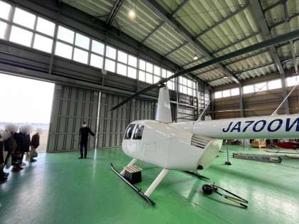 まずは、間近でヘリコプターを見たり、空飛ぶクルマについての説明を聞いたりしました。