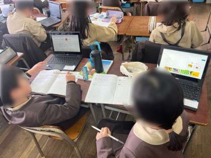 4年生は理科の学習です。冬の生き物について学習端末を使って復習しています。端末で生き物の写真や映像を見ながら、学習内容をふり返りました。