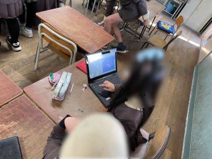 3年生は、係活動の時間でした。係のメンバーや、目的、活動内容等について学習者用端末を活用して紹介します。係のメンバーで役割分担をして取り組みました。