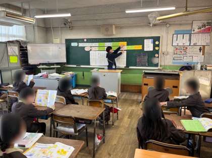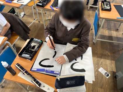 3年生は書写の学習です。今日の題字は「つり」、ひらがなは曲線が多いので力を入れすぎず、自然な筆運びを意識して練習しました。集中して丁寧に練習することができました。