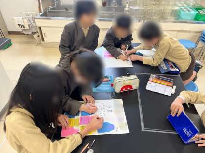 5時間目はたてわり班活動です。今日は1〜5年生がたて割り班で集まり、お世話になった6年生にメッセージカードを作りました。5年生が中心になって皆で心を込めてメッセージカードを作りました。6年生はきっと喜んでくれると思います。