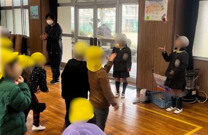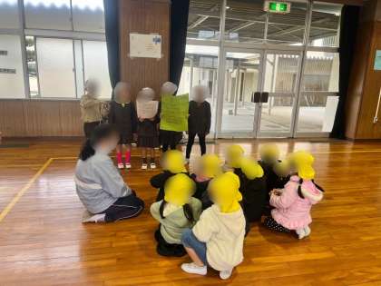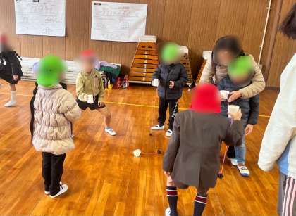 本日、次年度に入学する保育園児を招待し、交流しました。1年生の児童は、保育園児にこま回し、まつぼっくりけん玉、絵本の読み聞かせ、お手玉のグループに分かれて一緒に遊びました。保育園児もとても楽しんで遊んでくれて、1年生も少しお兄ちゃん、お姉ちゃんになれました!