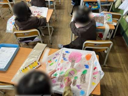 1年生は生活科の学習で凧の絵を描いています。完成に近づき、子ども達の凧はそれぞれの個性が光るオンリーワンになってきました。早く、外で凧あげがしたいですね。