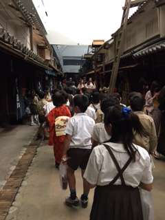 江戸時代の大阪の街並みを再現した映画のセットのようなところを見学したり、近代の大阪の街のミニチュアなどを見学したりしました。