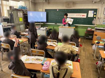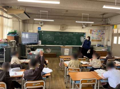 3年生は算数のかけ算の学習です。問題文を読んでわからないところを□にしてことばの式を作って考えました。子ども達は□を使って、ことばの式をつくり、かけ算の九九をたよりにわからない数を求めることができました。