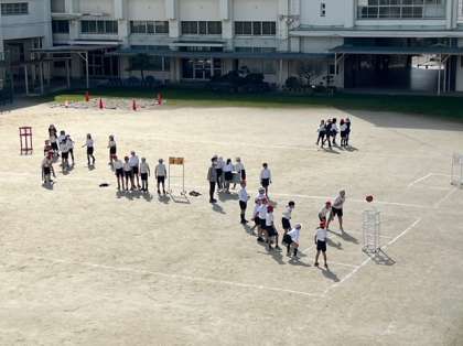 5年生は、体育でゴール型ゲームの学習をしています。試合にも慣れ、自分らしいプレーができるようになってきました。ゴールが入るたびに大きな歓声があがりました。