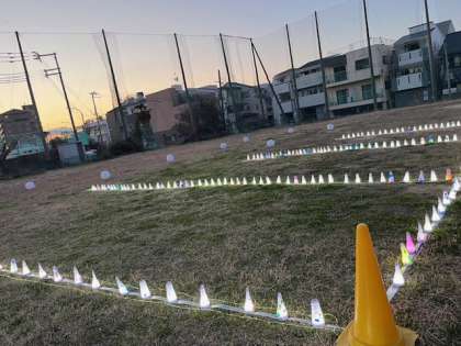 日が暮れるころ、小学校で制作した平和の祈りを込めたランタンに明かりを灯しました。子ども一人一人の願いが灯ったランタンが並ぶととてもきれいでした。