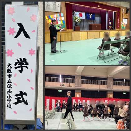 本日は、伝法小学校の入学式です。晴天にめぐまれ、小学校生活に胸をふくらませる37名の児童が入学しました。