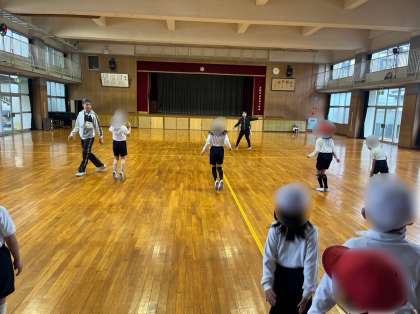 3年生は体育の学習です。新しい学級で初めての体育、走ったり、跳んだりする運動をしました。また、並び方も学習しました。