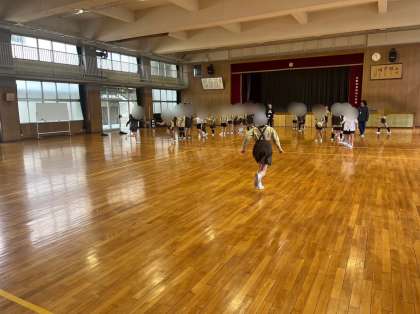5年生は、講堂でみんな遊びで折り返しリレーや、おにごっこ、ドッジボールをしました。みんなで協力したり、競い合ったり、楽しい時間を過ごしました。
