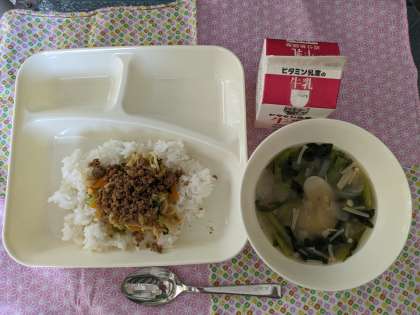 今日の給食は、韓国・朝鮮料理のビビンバ、トックです。