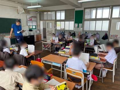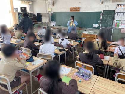 5年生は、英語の学習でした。C-NETの先生や担当の先生が発するアルファベットの発音を聴き取って、アルファベットを文字で書きました。繰り返し練習して、慣れていくことが大切ですね。