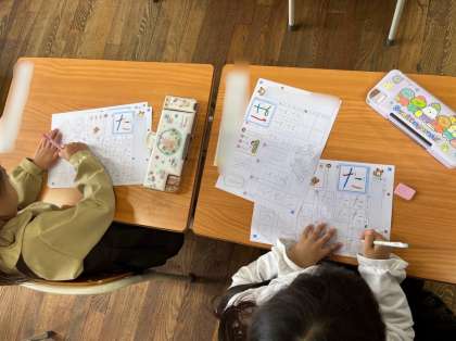1年生は国語でひらがなの学習をしています。1日に2つずつひらがなを習います。子どもたちは一字一字、ていねいに練習していました。すばらしいです。