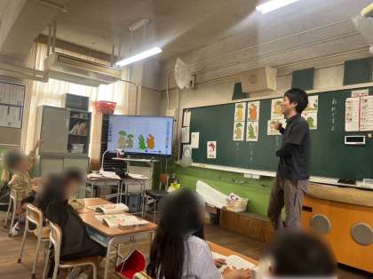 1年生は国語で「あめですよ」という文を学習しています。このお話は、たくさんの登場人物がいて、それぞれが雨が好き、嫌いと分かれています。子どもたちは、登場人物のイラストを見ながら、雨が好きなのは、水辺の生き物で、一方で雨が嫌いなのは、全身が毛皮に覆われた生き物だと発表してくれました。