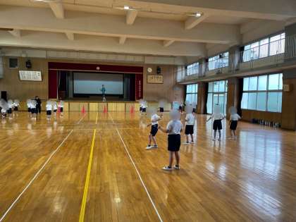 2年生は、運動会の団体演技の練習でした。雨だったため、講堂になりましたが、涼しいこともあり元気一杯、笑顔で取り組んでいました。