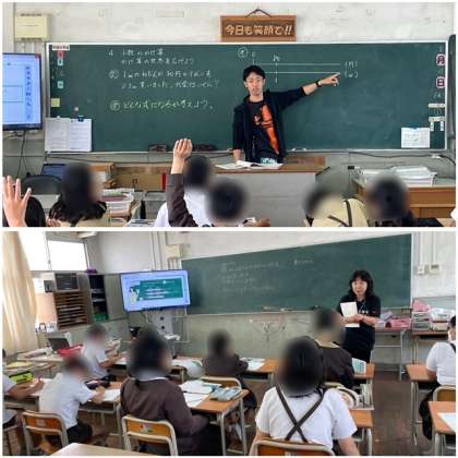 5年生は、算数で2つのグループに分かれて「小数のかけ算」の学習に取り組みました。小数でも立式の仕方は整数と同じように考えられることや整数×小数の計算は、既習事項や数直線を用いれば答えを求められることに気づきました。