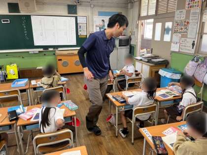 1年生は国語の説明文「さとうとしお」を学習しています。今日は、筆者が問いかけをしている文章を見つけていきました。あじ、さわってみると、なにからできるかといった問いかけの文を見つけることができました。
