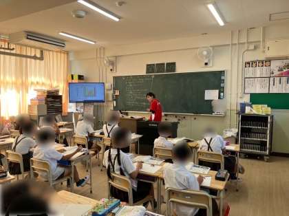 5年は算数で小数のわり算のまとめをしています。小数÷小数の筆算の問題に取り組みました。子どもたちはわり算の筆算を小数点に注意しながら練習しましした。