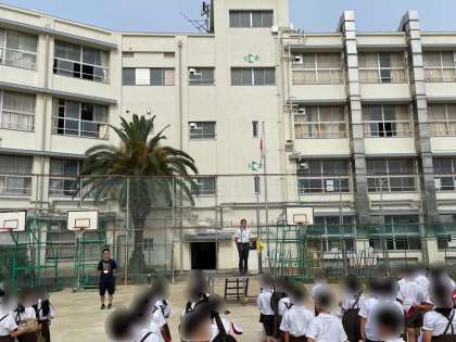 今週の児童朝会は、運動場で行いました。校長先生からは、今週の金曜日に迎える「夏至」についてお話がありました。6月も中旬を迎え、日中の明るい時間も長くなってきました。日に日に暑さも増しています。睡眠や栄養をしっかりととり、元気に過ごしてほしいと思います。