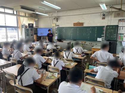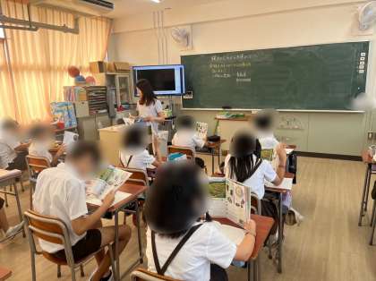 5年生は音楽の学習です。リコーダーのテストをしました。課題曲には高い「ファ・ソ」の音が出てきます。子ども達は、サミングを工夫して上手に演奏していました。