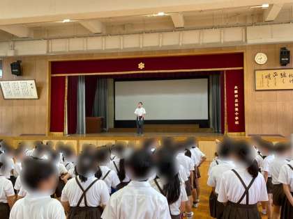 7月に入りました。校舎の改築工事に伴って、今月から運動場が大幅に狭くなるので、児童朝会も講堂で実施しました。児童朝会では、校長先生から、煩わしいことや面倒だと思うことも前向きに考えて取り組めるよう工夫をしてみることが大切だというお話がありました。また、係の先生からは、明日のプール開きに向けて諸注意がありました。いよいよ、子どもたちが楽しみしているプール水泳が始まりますが、体調管理や安全面に気をつけて実施していきたいと思います。