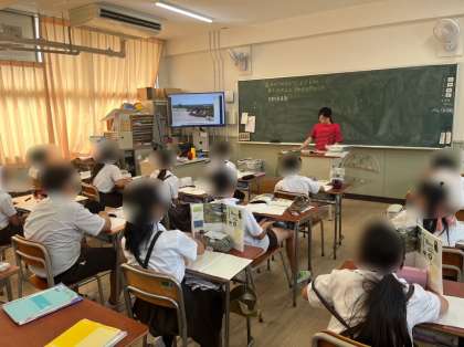 5年生は国語の学習です。4年生を似ているのですが、5年生は新聞記事を読み比べています。同じ出来事があっても、新聞によって取り上げる大きさや表現の仕方が異なります。5年生も2つの新聞を読み比べながら、その違いについて交流しました。