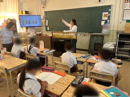 4年生は算数では、そろばんを使って計算をしました。そろばんは位取りがわかりやすいのでその数を入れることは簡単です。計算は少し難しいところもありますが、子ども達は熱心に取り組んでいました。