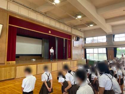 長い夏休みが明け、今日から2学期がスタートしました。始業式では、校長先生からパリ五輪のことや2学期の学校生活に向けてなど、様々なお話がありました。また、学習者用端末に導入された「らっこたん」というタイピングアプリについて担当の先生から説明がありました。楽しみながら学んでほしいと思います。最後に、校歌をみんなで歌って、気持ちを新たにしました。