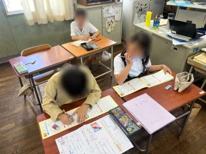 3年生は、新しくもらった漢字ドリルに早速取り組みました。最初のページはこれまでの復習です。習った漢字をしっかり書くことができました。