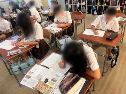 6年生は社会科で「貴族のくらしの中から生まれた文化」について調べています。教科書で平安時代の貴族の服装や食事、文学、娯楽等を調べると、これまでの大陸から伝わった文化と異なり、わが国独自の文化が生まれていたことがわかりました。