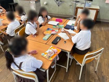 3年生は国語で「グループの合言葉を決めよう」の学習をしています。これまで話し合いの役割について確かめてきました。いよいよ、今日は実際にグループで話し合いです。子ども達は、上手に話し合いを進めることができました。